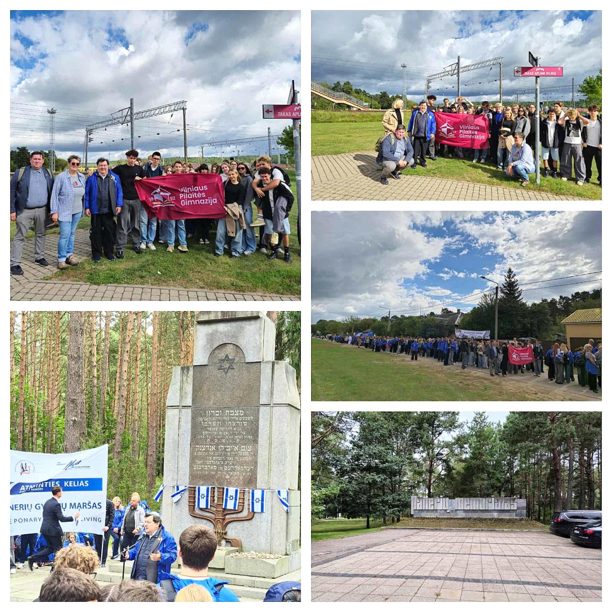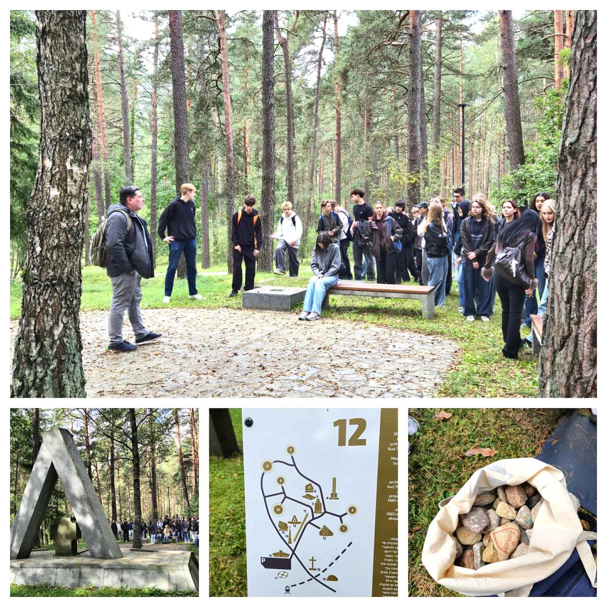 Minint Lietuvos žydų genocido atminimo dieną, mūsų gimnazijos mokiniai ir mokytojai keliavo į Panerius. Tai buvo ne šiaip ekskursija, o jautri atminties kelionė, kurioje kiekvienas žingsnis, kiekvienas akmuo turėjo prasmę. Kelionė prasidėjo nuo buvusių Vilniaus geto vartų iki geležinkelio stoties, iš kurios traukiniu vykome į Panerius. Jau pats važiavimas, lėtai judant per mišką, sukūrė ypatingą nuotaiką. Atrodė, kad traukinys atveža ne tik mus, bet ir tūkstančius prisiminimų, kurie, kaip ir mes, skrieja per tą pačią erdvę. Atvykę į Panerių geležinkelio stotį, pajutome ramybę ir susikaupimą. Mūsų Atminties kelias prasidėjo nuo stoties, vedė per mišką link Panerių memorialo. Šis kelias tapo ne tik fizine trasa, bet ir simboline kelione į praeitį, kurioje mintimis prisiliečiame prie čia įvykusių tragiškų įvykių.