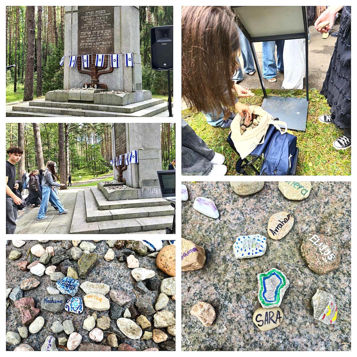 Vienas jautriausių momentų buvo pasiruošimas ceremonijai. Prieš kelionę mūsų gimnazijoje, mokiniai kruopščiai rinko akmenukus. Ant jų, tarytum ant mažų kapų, rašė nužudytųjų Paneriuose vardus. Tai buvo ne tik vardai – tai buvo prarastos gyvybės, neišgyventos istorijos ir nutraukti likimai. Kiekvienas akmenukas, kiekviena raidė tapo asmeniniu atminimo simboliu. Atvykę prie memorialo, gimnazistai lėtai ir pagarbiai paliko juos ant akmeninės sienos. Ši tradicija, kurią perėmėme iš žydų tautos, leidžia pajusti ryšį su tais, kurių čia nebėra.