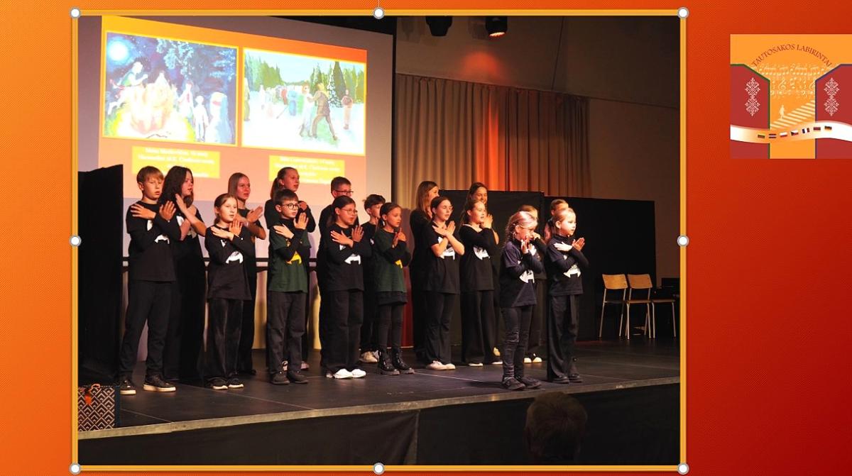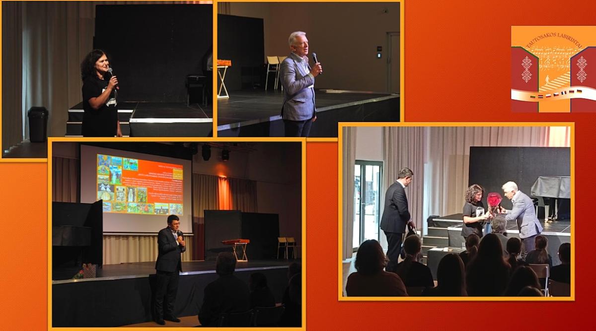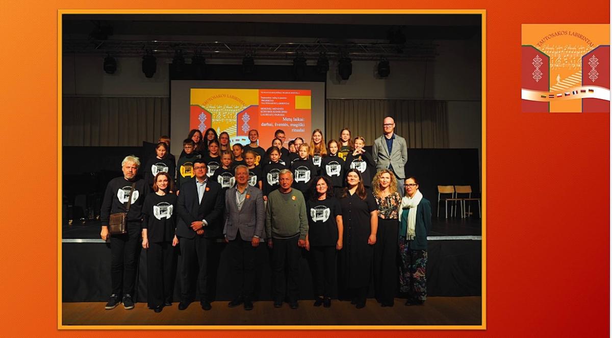 Renginio pradžioje susirinkę dalyviai klausėsi nuostabaus balso dainininkės, mokytojos Eglės Šlimaitės atliekamų autentiškų liaudies dainų, kurių melodijos susipynė su vaikų kūryba. Projekto dalyviai dainavo, grojo, kvietė keliauti liaudies dainų ir instrumentinės muzikos labirintų takais. Šypsenos, gera nuotaika lydėjo projekto dalyvius, mokytojus ir klausytojus į dailės darbų parodą. Dalyvius sveikino Vilniaus Pilaitės gimnazijos direktorius Mindaugas Briedis, projekto globėjas Lietuvos Respublikos Seimo narys Vytautas Sinica ir Dailės mokytojų asociacijos prezidentas Rimantas Kisielius. Parodos dalyviai turėjo galimybę susipažinti su 82 laureatų darbais – tai tarsi tiltas tarp praeities ir dabarties, kviečiantis ne tik stebėti, bet ir susimąstyti, ką mums reiškia tautinis paveldas šiandien. Puiki proga prisiminti, kaip mūsų protėviai aiškino pasaulį, šventė svarbiausias metų ciklo akimirkas ir saugojo bendruomenės vienybę per simbolius, pasakojimus ir apeigas. Juk 2025 metai yra M. K. Čiurlionio metai, o jo kūryba yra Lietuvos kultūrinės tapatybės simbolis. Projekto dalyviai pasipuošė Čiurlionio ženkliukais, kuriuos įteikė Lietuvos Respublikos Seimo narys Vytautas Sinica.