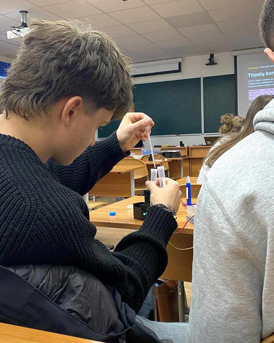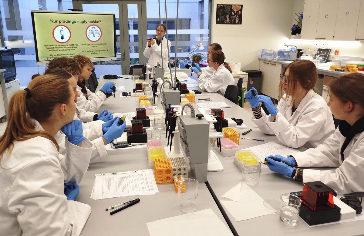 2025 m. spalio 27 d. III klasės mokiniai (Bio3 modulis) lankėsi Gyvybės mokslų centre ir fizikos fakultete. Ieškodami, kur dingo septintaškė, mokiniai pagilino savo žinias apie PGR reakcijos veikimo principus bei turėjo galimybės išbandyti naujus prietaisus, taikomus DNR tyrimuose. Likusi grupė mokinių tyrinėjo teršalų kiekį, naudodamiesi kolorimetru.