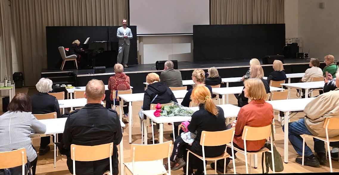 Jauki ir draugiška atmosfera tęsėsi gimnazijos salėje, kur dalyviai, pianistei Lijai Neugasimovai virtuoziškai akomponuojant, klausėsi Vandos ir sūnaus Jono Sakalausko kurtų dainų, arijos iš solisto repertuaro. Netrūko saldumynų, šiltos kavos ir arbatos, malonių pokalbių, naujų pažinčių.