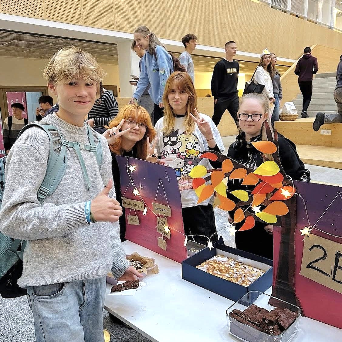 Spalio 16 dieną gimnazijoje vyko Pyragų diena kartu su trečiąja devintokų krikštynų užduotimi. Per ilgąsias pertraukas mokykloje netrūko jaukumo ir gardžių kvapų – ant stalų puikavosi įvairūs mokinių kepti pyragai, keksiukai ir sausainiai. Mokiniai patys pasirūpino su kepiniais – juos siūlė ir pardavinėjo, taip parodydami iniciatyvą, kūrybiškumą ir atsakomybę.