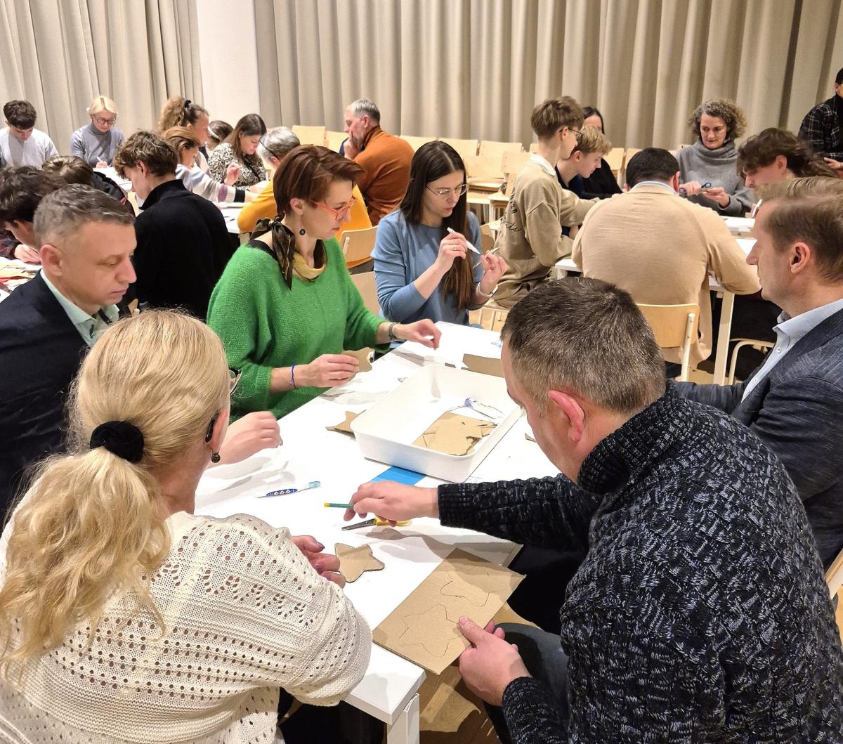 Gruodžio 4 d. 1 S klasės mokiniai kartu su tėveliais susirinko į jaukią adventinę vakaronę „Jievaro tiltas“, kuri tapo svarbia STEAM projekto „Tiltai“ dalimi. Šios popietės tikslas – simboliškai nutiesti tiltą tarp šiandienos ir senųjų lietuviškų tradicijų, tarp vaikų ir suaugusiųjų, tarp skirtingų kartų patirčių.