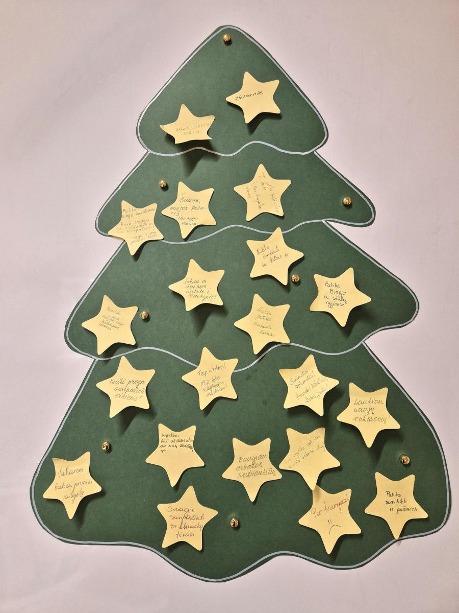 Po nuotaikingų žaidimų visi įsitraukė į kalėdinių papuošimų gamybą. Bendromis jėgomis buvo papuoštas klasės kalėdinis medis. Vakaro pabaigoje, mažose grupelėse pasidalinus įspūdžiais, sukurta simbolinė refleksijos eglutė, papuošta vaikų ir tėvų mintimis. Renginys užbaigtas jaukiais pokalbiais ir bendravimu prie adventinių vaišių stalo.
