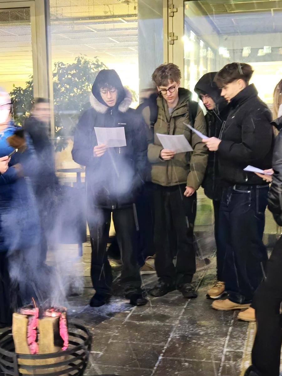 Sausio 13-osios rytą gimnazijos languose dega „Pergalės šviesa“. Prie centrinio įėjimo liepsnoja žvakės, o prie jų mokiniai bei mokytojai susirenka dainuoti tautines dainas. Mokinių parlamento nariai dalija karštą arbatą ir atminimo ženklelius atvykstantiems.