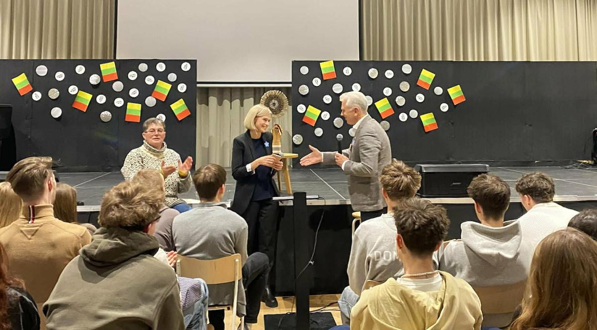 Tą dieną gimnaziją aplanko ypatinga viešnia – buvusi mokyklos mokinė, žurnalistė ir režisierė Aistė Stonytė. Ji pasakoja mokiniams apie savo režisuotą filmų ciklą apie Laisvės gynėjus „Neužmiršti“ bei dalijasi asmeniniais išgyvenimais iš 1991-ųjų Sausio įvykius. Jos jautrus, atviras  pasakojimas  kviečia branginti laisvę,  siekti tiesos ir būti aktyviais šios šalies piliečiais.