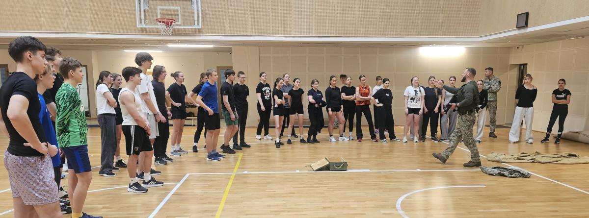 Gimnazistai sudalyvavo rikiuotėje, mokėsi pirmosios medicininės pagalbos suteikimo subtilybių, o sporto salėje laukė iššūkis – komandinės estafetės, pareikalavusios pasitikėjimo vienas kitu, susikaupimo, ryžto ir ištvermės.