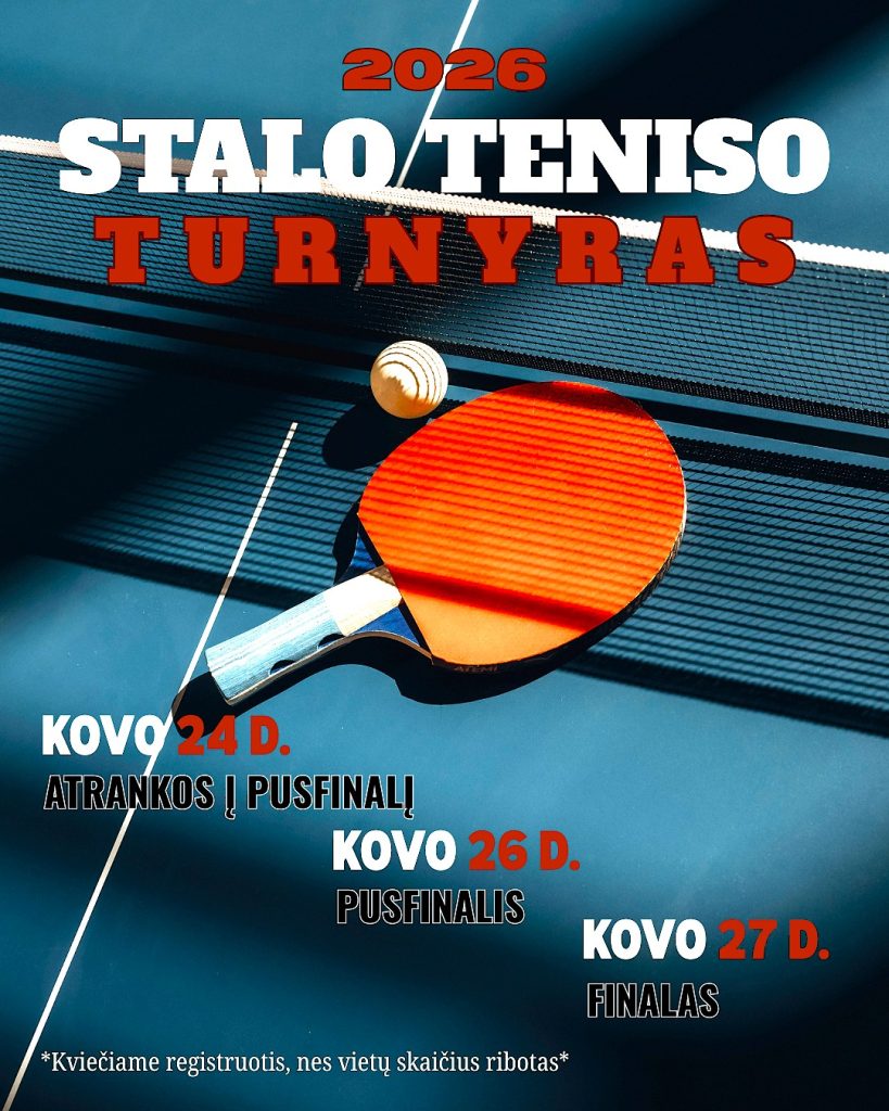 Kovo 24, 26 ir 27 dienomis ilgųjų pertraukų metu gimnazijoje vyks Mokinių Parlamento organizuojamos stalo teniso varžybos. Kviečiame visus aktyviai dalyvauti ir išbandyti savo jėgas prie teniso stalo.